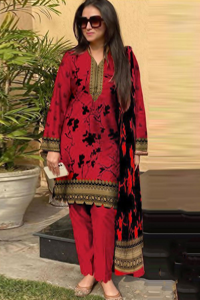 + Free ShippingLimelight 3pcs Unstitched Embroidered Winter Linen Suit