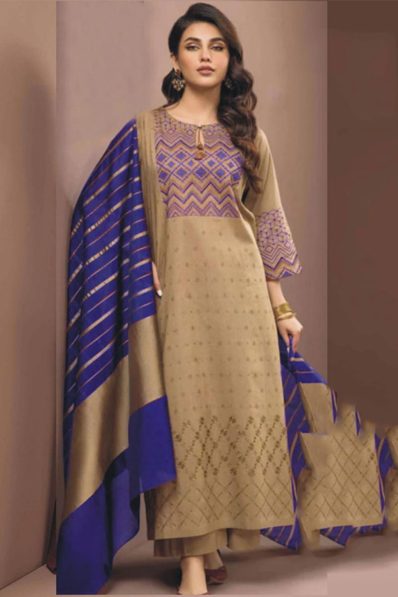 Nishat 3pcs Unstitched Embroidered Winter Linen Suit