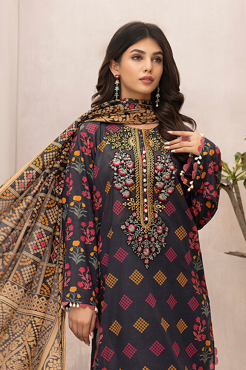 + Free ShippingSo Kamal 3pcs Unstitched Embroidered Winter Linen Suit